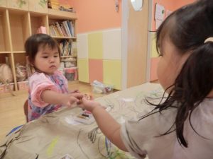 製作は、絵の具なに色にしようかなぁ〜![]()