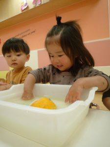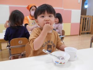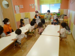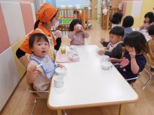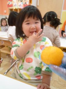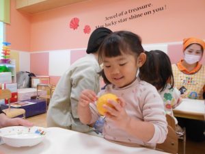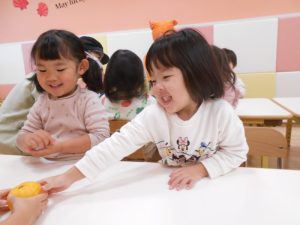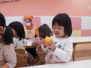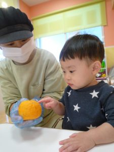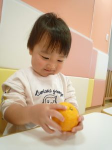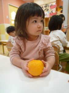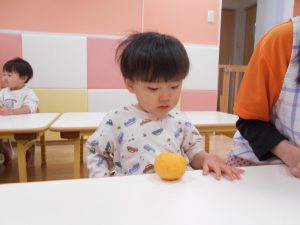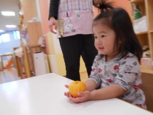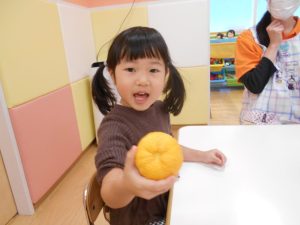 保育園では、朝にゆずについて、栄養面を聞いたり、ゆずを触ったりして楽しみました![]()