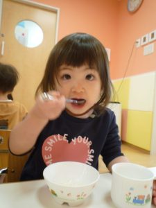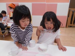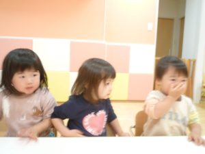 」と手をつけるいちご組さん![]()