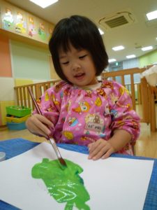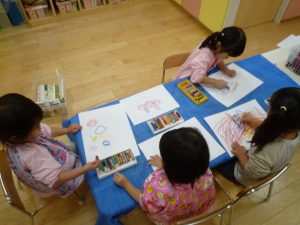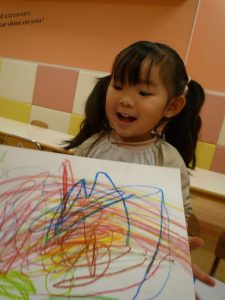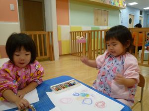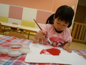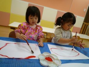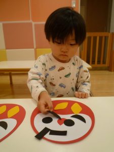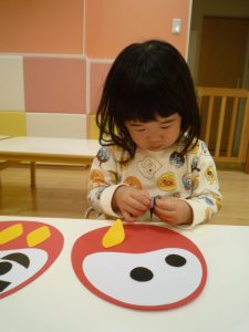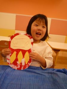 出来上がると、だるまさんのお顔をクレヨンで描きました![]()
