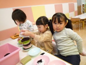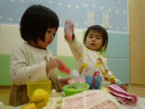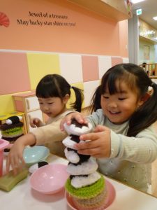 おままごとでは、最近タワーみたいに積み上げるのを楽しんでおられます![]()