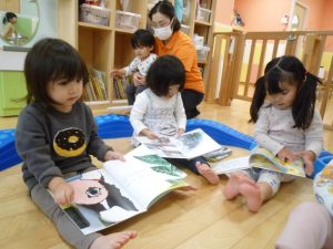 遊んだあとに、ゆったりと絵本の時間もいいね![]()