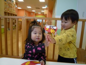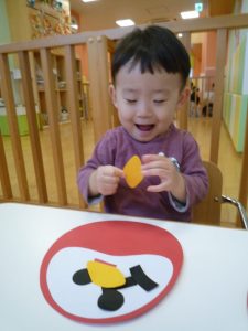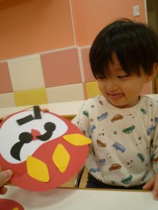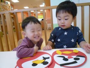 今週は、お部屋遊び、製作で作っただるまさんをご紹介させていただきたいと思います![]()