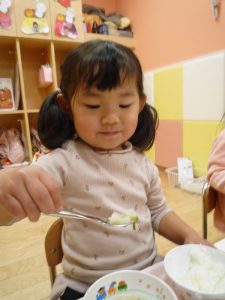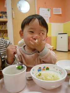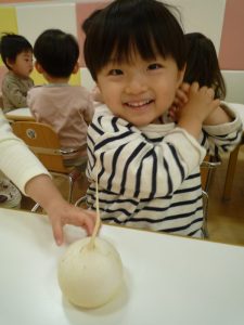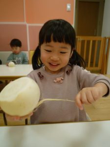 そして、給食で朝に見たり触ったりしたかぶが味噌汁になりました![]()