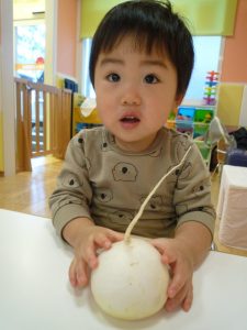 今回の食育のねらいと致しまして、大根とかぶの違いを知るという内容でございます![]()
