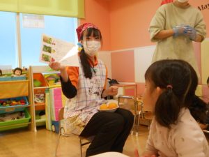 サンライズキッズ保育園 ◎給食の様子 おやつの「ごまクッキー」は焼いているときから、クッキーの香りが...