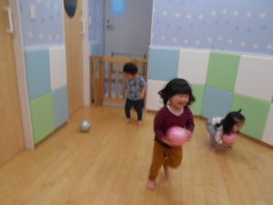 「ボールを持って逃げちゃうよ〜
