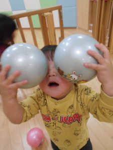 「これはね、ボールを投げ合って遊んでるの