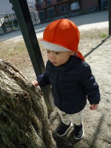 公園では、お友だちと探検