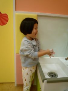 「お外から帰ったら、石鹸泡泡できれいきれい
