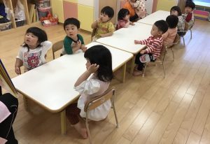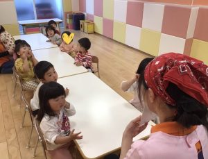「あっぷっぷー!!」に合わせて子どもたちも「ぷーー!!」とお顔を見せてくれます😚