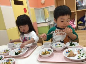ペロリと食べると、「おかわりちょーだい!!」と伝え、食欲旺盛な子どもたちです✨