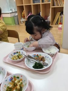 給食を提供すると、すぐに手を伸ばしていましたよ😋