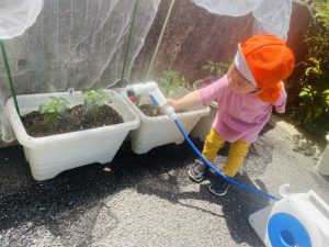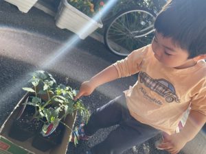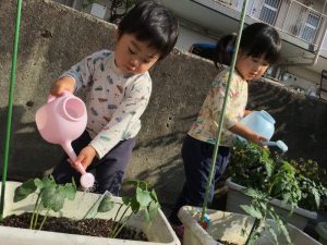 植えた後には「おおきくなぁーれ!」とたっぷりお水をあげてくれました👏