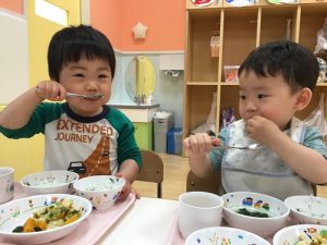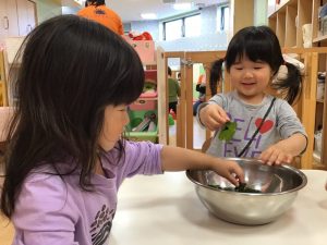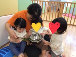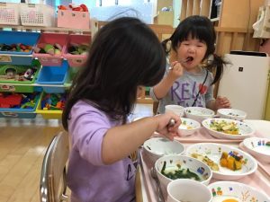 おいしそうで、パクッと食べようとするお友だちも😋❣️