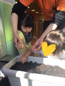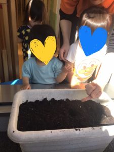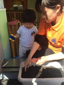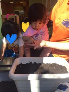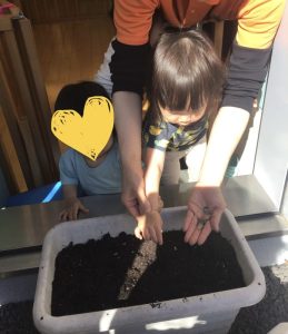 パラパラ〜!ポトン!!と上手に植えていました👏