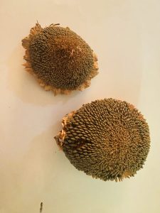 昨年咲いていたひまわりの中心部分を干しておいたものを子どもたちに見せてみました😁