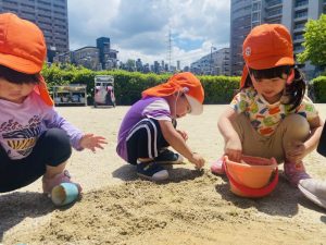 砂遊びでは、、