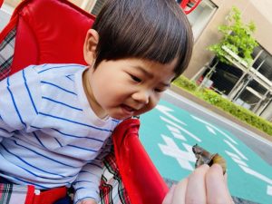 公園で出会ったかたつむりを園に連れて帰ってきました😄