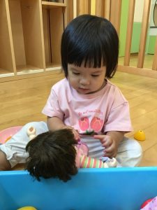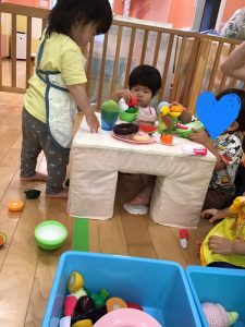 りすやうさぎ、くまさんがやってきて、みんなでおままごとが始まります☺️🍽