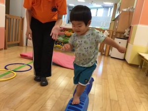 ・横回転をする・バランスで維持する・ジャンプ動作を身につける・ボールを転がしてみる