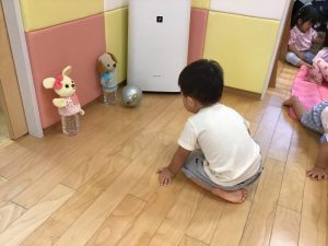 うさぎさん?いぬさん?どっちにボール渡そうかなー♫