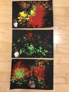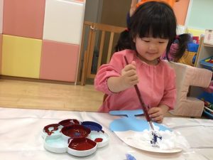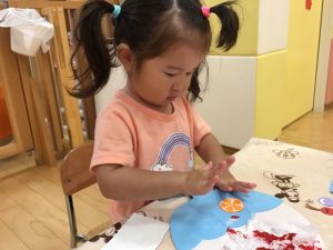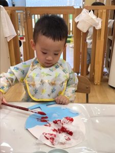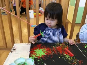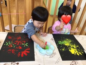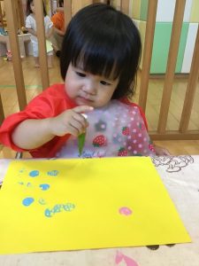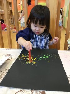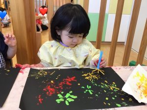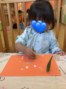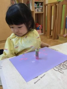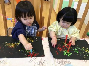 トイレットペーパーの芯やストローの先を切ったものを使ってスタンピング🎨