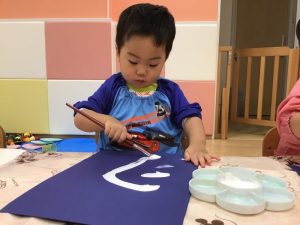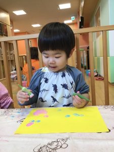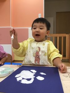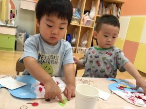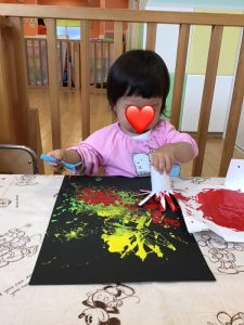 ペタペタ〜〜たのしい🎶もっとしたくて、画用紙おかわりもしたよ✌️