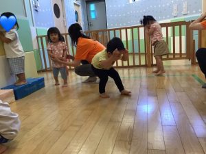 音楽に合わせて身体を動かし表現力・創造力を養い、全身でリズムを感じることリズム感・身体的能力・集中力が向上し、季節の歌・童謡を取り入れ五感を育てます☝️