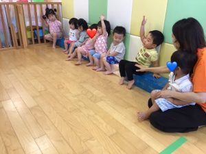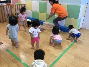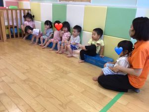 保育者の声掛けに合わせて、「はーい!」とお返事してくれるようになってきました🤚
