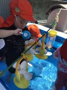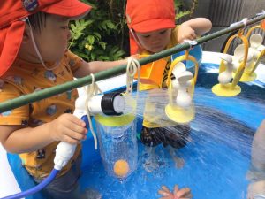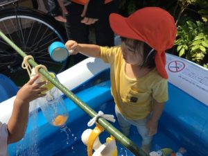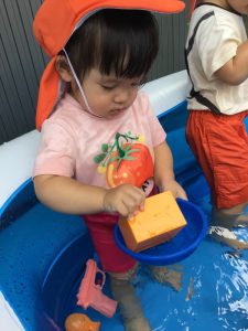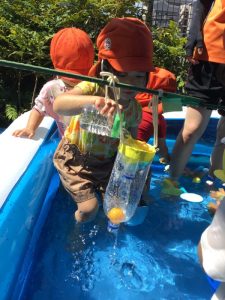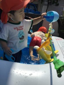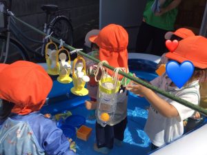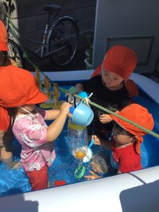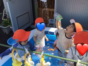 最初は何かなーと見ていたいちご組のお友だちも、水を入れてみる姿が、、、☺️