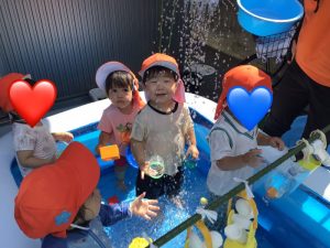 「プールはいる人ー??」と聞くと、「はーい🙋‍♀️」と元気いっぱい答えてくれるプール大好きな子どもたちです❤️