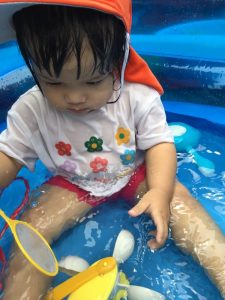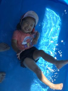 プールの中に座って全身で水の感触を楽しむ姿が見られるように😆💓