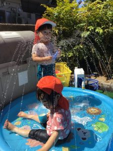 噴水マットで水がかかってもへっちゃらだね😁