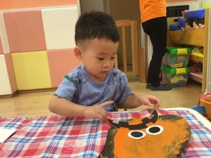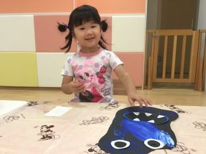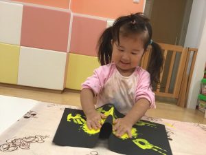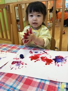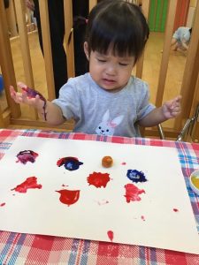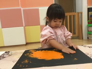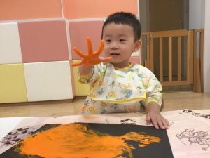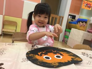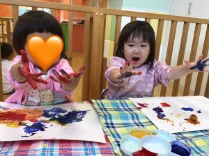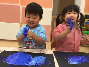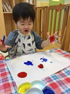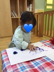 ぼんてんに絵の具をつけて、おててでペタッ🤚