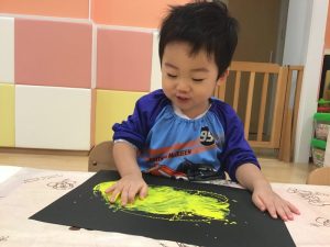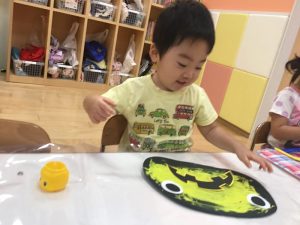 ぼんてんに絵の具をつけて、おててでペタッ🤚