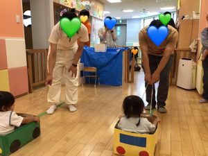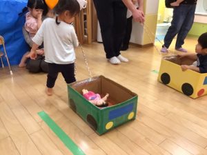 保護者の方に引っ張ってもらってご機嫌の子どもたちでした☺️