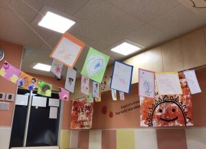 みんなで作った万国旗を飾って準備万端🎌