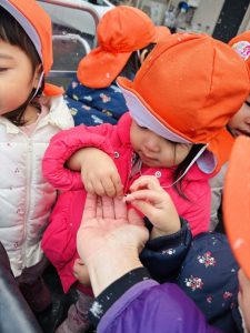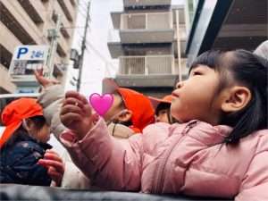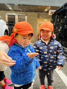 「ゆきー!!❄️」「つめたい!!😆」と大興奮の子どもたちでした🩷