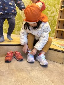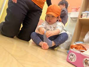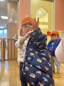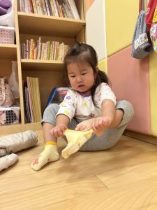お外に行く前には、靴下、帽子、上着を着ます🧦👒🧥
