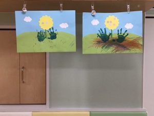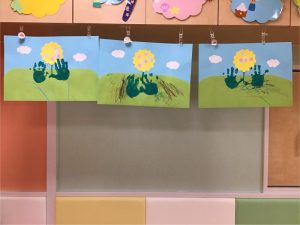 お絵描きや折り紙、手形でチューリップの作品ができました🌷