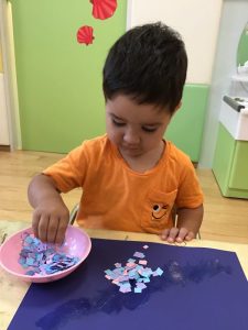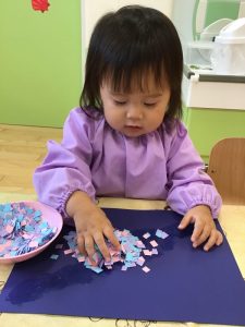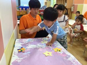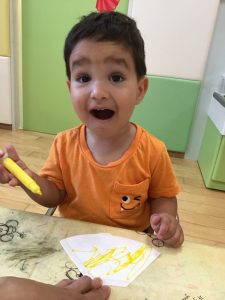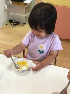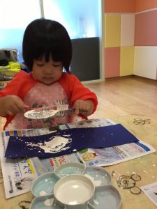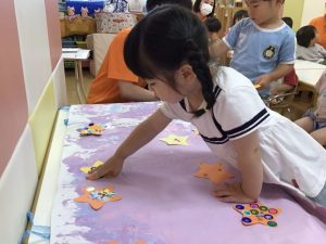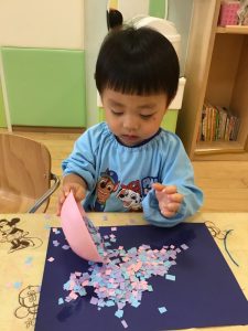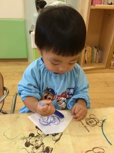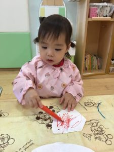 自分の作品が分かるようになり、「これ〇〇の!」と、自分の作品を見つけて、お話ししてくれる姿がたくさん見られていました☺️