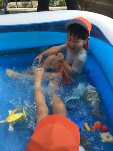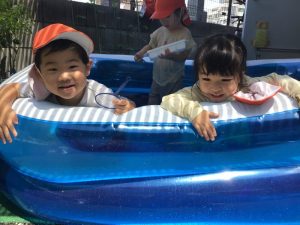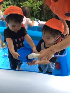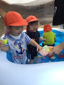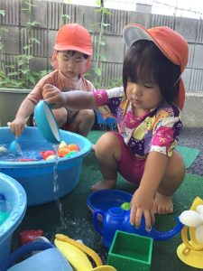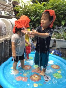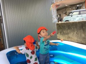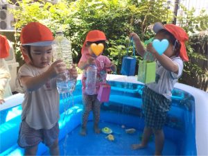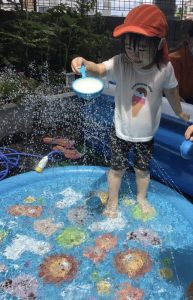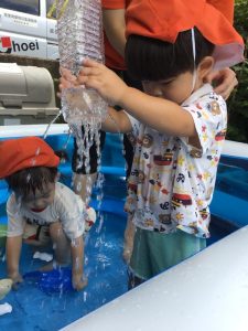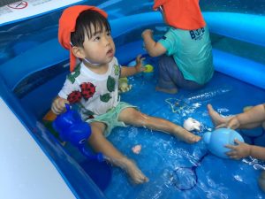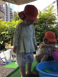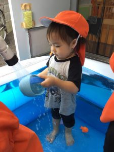 7月たっぷりと水の感触を味わってきて、あそび方もだんだんと大胆になってきました😝