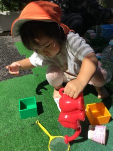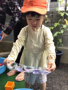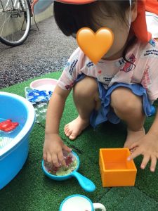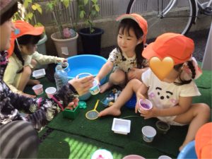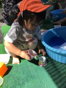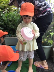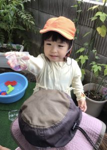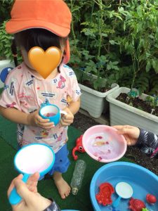 お花や葉っぱに水を入れて、混ぜ混ぜ♩♪ぎゅっぎゅ🎵