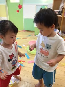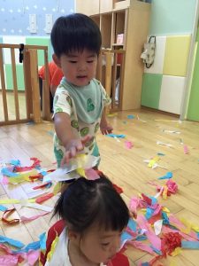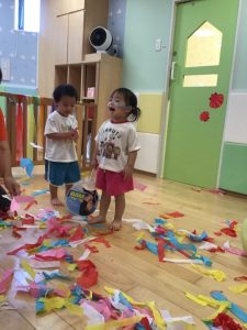 花紙を使って遊びました🎶