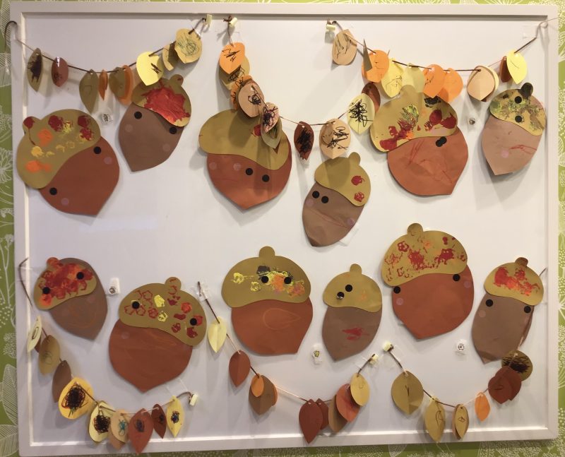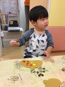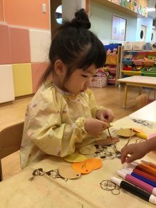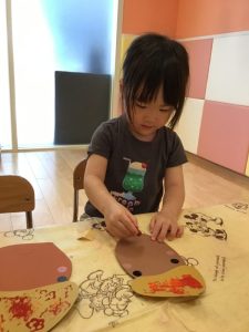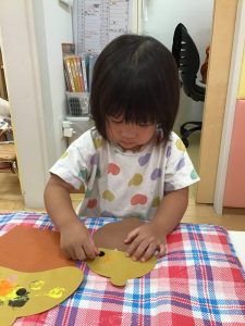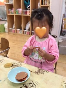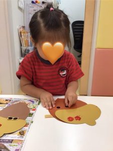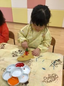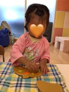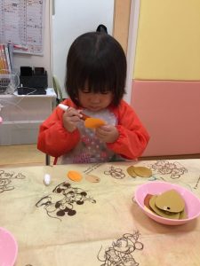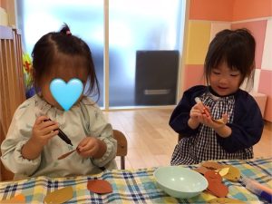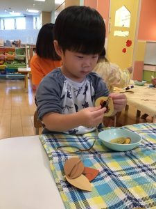 お話を見た後、りんご組のお友だちはどんぐりを作りました😉