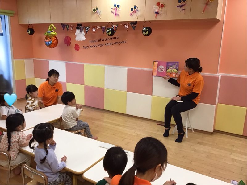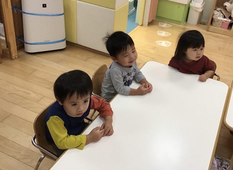 お部屋に飾った飾り付けを見たり、製作をしたりしながら、「ハロウィン!!」と楽しみにしている子どもたちです😍