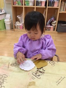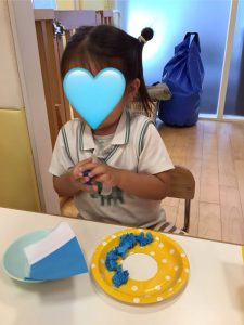のりを塗り塗り☝️手を貼りました🖐️