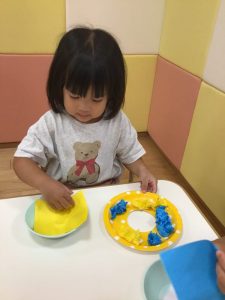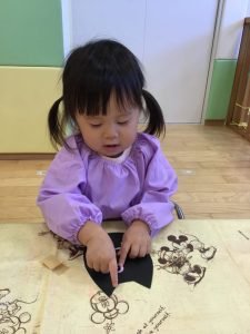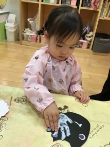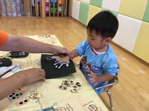 まずは絵の具を塗ってペタッ🖐️