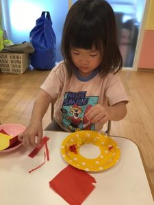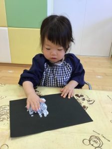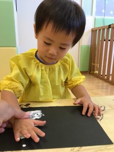 のりを塗り塗り☝️手を貼りました🖐️